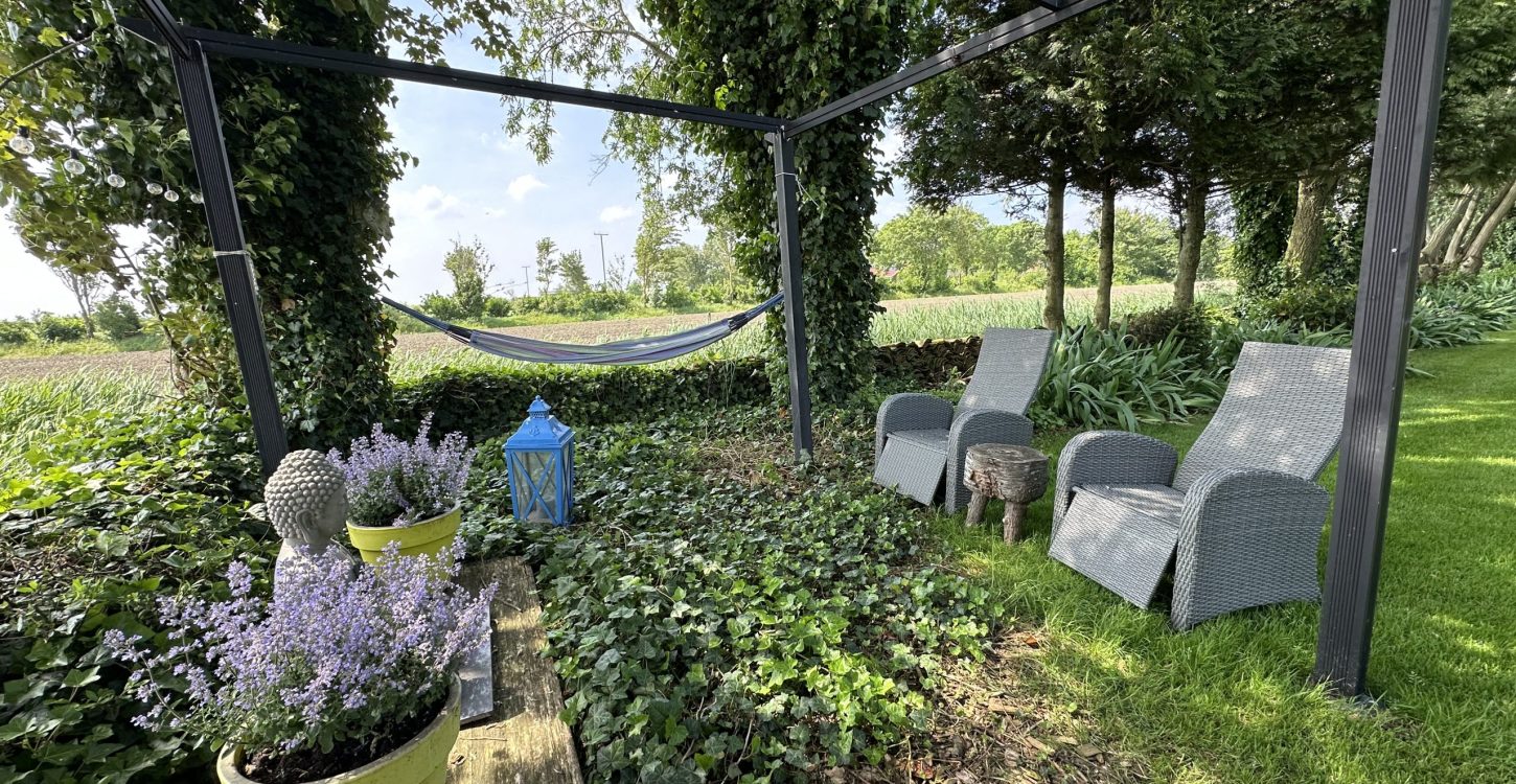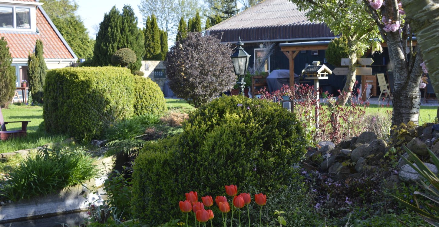 Koepeltjesplaats is omringd door weidelandschap met koeien, schapen, vogels en heeft een prachtig onderhouden tuin.